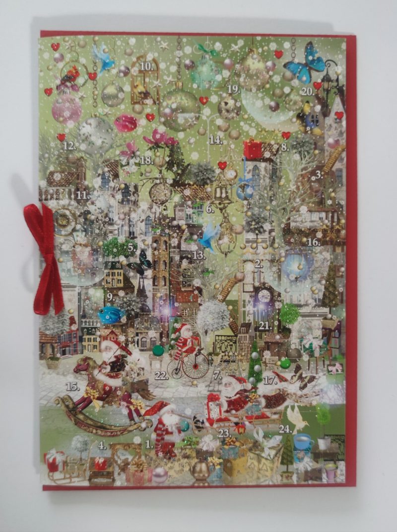 Adventskalender als Doppelkarte B6-Format mit Umschlag, einzeln cellophaniert, Art.-Nr.DK 05